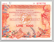 ![]() ファルネーゼ劇場の入場券。 4000リラ(約200円) |