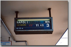 遅れるということでいえば、イタリアでは駅構内の電光掲示板には、行先、発車時刻、番線のほかにRITという文字を見ることができる。これはritardoの略で「遅れ」ということだ。電光掲示板には最初から時間の遅れが書き込めるようになっているのだ。つまりかなり頻繁に遅れるという事態が予想されているのではないだろうか。そして私には原因は知る由もないがたしかによく遅れる。ただ飛行機とちがい、何時間も大幅に遅れることは稀で、いいところ30分以内というところだ。それに電車の場合は本数があるので別の電車に切り替えることもそうむずかしいことではない。