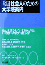 | 専門的職業人の養成、生涯学習の推進などの目的を掲げ、社会人を積極的に受け入れる大学院が増えている。社会人入試を行う大学院、夜間大学院、昼夜開講制の大学院、独立研究科のほか、'99年度開設の通信制の大学院など、社会人に開かれている310大学院711研究科の最新情報を満載。志望分野で探せる研究科別の一覧、'99年度の応募状況一覧付き。 |
