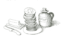ホットケーキは、パンケーキ、グリドル・ケーキ、フラップジャック・ケーキともよばれている。1600年代の初め、ホットケーキは定期市やお祭り、そのほかにぎやかな行事で売られていた。こういった記念日での、おやつのベストセラーになっていった(現在でも、パンケーキの朝食は大変なお金を稼ぎだしている)。